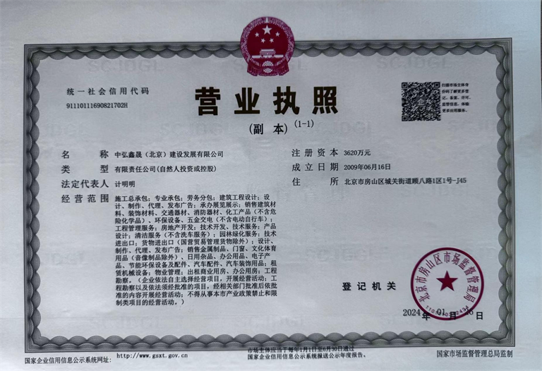 中弘鑫晟(北京)建設發展有限公司成立于2009年,坐落于北京市房山經濟開發區!本公司專注于建筑工程項目設計及改造加固計算及施工作業一體化的專業型企業。具有建筑結構設計 消防改造設計 結構加固設計能力,公司建筑裝飾裝修資質、鋼結構資質、環保工程資質、建筑結構補強資質、防火保溫防水資質、勞務施工資質。公司可承接房建各專業設計、鋼結構住宅、裝飾裝修、工程改造拆除加固、別墅改建、勞務分包工程施工等多類項目,我公司涉及工程已廣泛遍布于我國的各個行業!